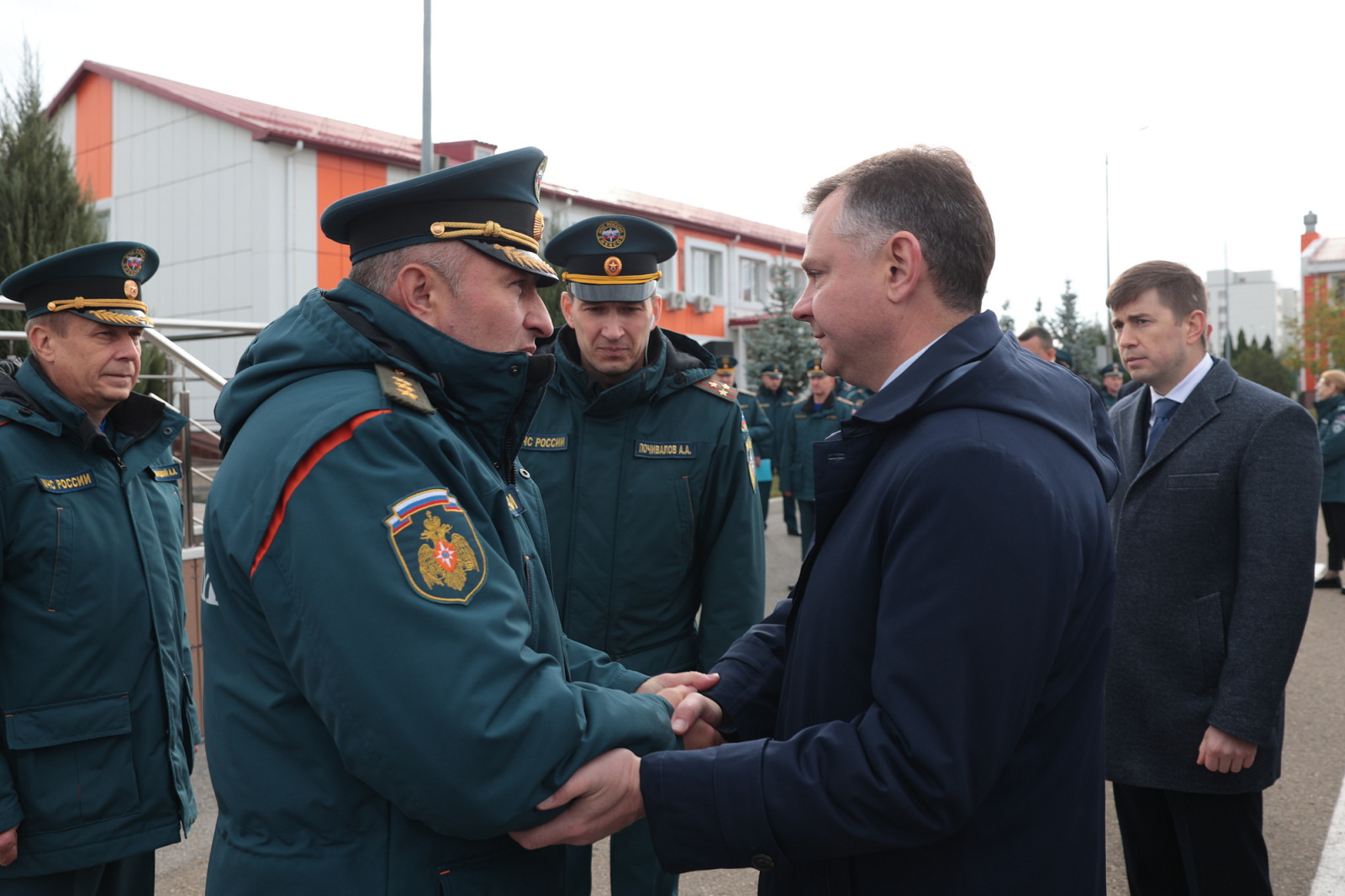 Глава ведомства и губернатор пообщались с личным составом и поблагодарили за самоотверженность в нелегком, но благородном деле.