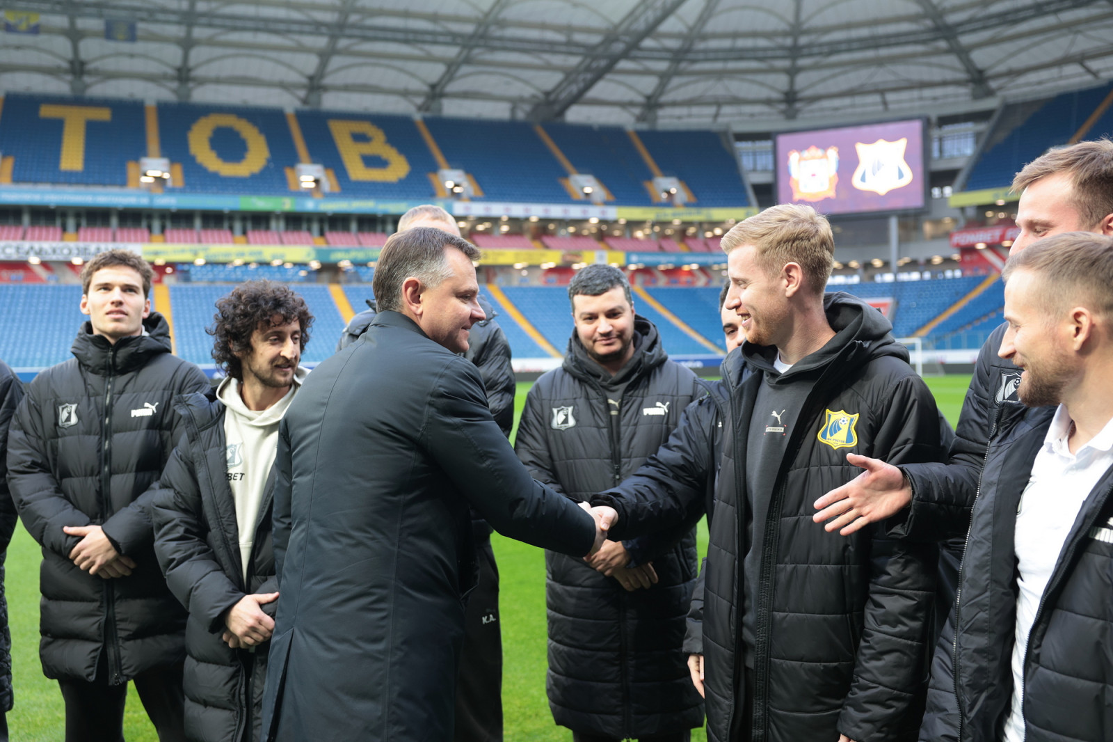 Губернатор Ростовской области Юрий Слюсарь приехал на стадион «Ростов-Арена» и пообщался с игроками, тренерским штабом и менеджментом ФК «Ростов».