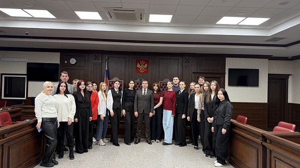 В Южном окружном военном суде провели очередную обзорную экскурсию для донского студенчества. В этом раз — для делегации Ростовского института защиты предпринимателя. Гости узнали об особенностях пропускного режима в здание суда, о профессии судьи, деятельности суда, категориях рассматриваемых здесь дел и вообще о специфике судопроизводства в военных судах, в том числе - структуре построения военных судов, подсудности уголовных дел, других особенностях.