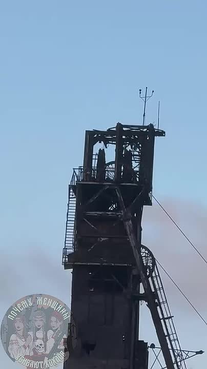 Флаг Российской Федерации на стволе шахты в южной части Димитрова (Мирнограда).