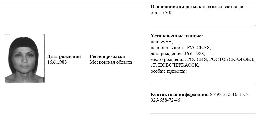 Карточка с данными Анны Хоботовой появилась в базе МВД.