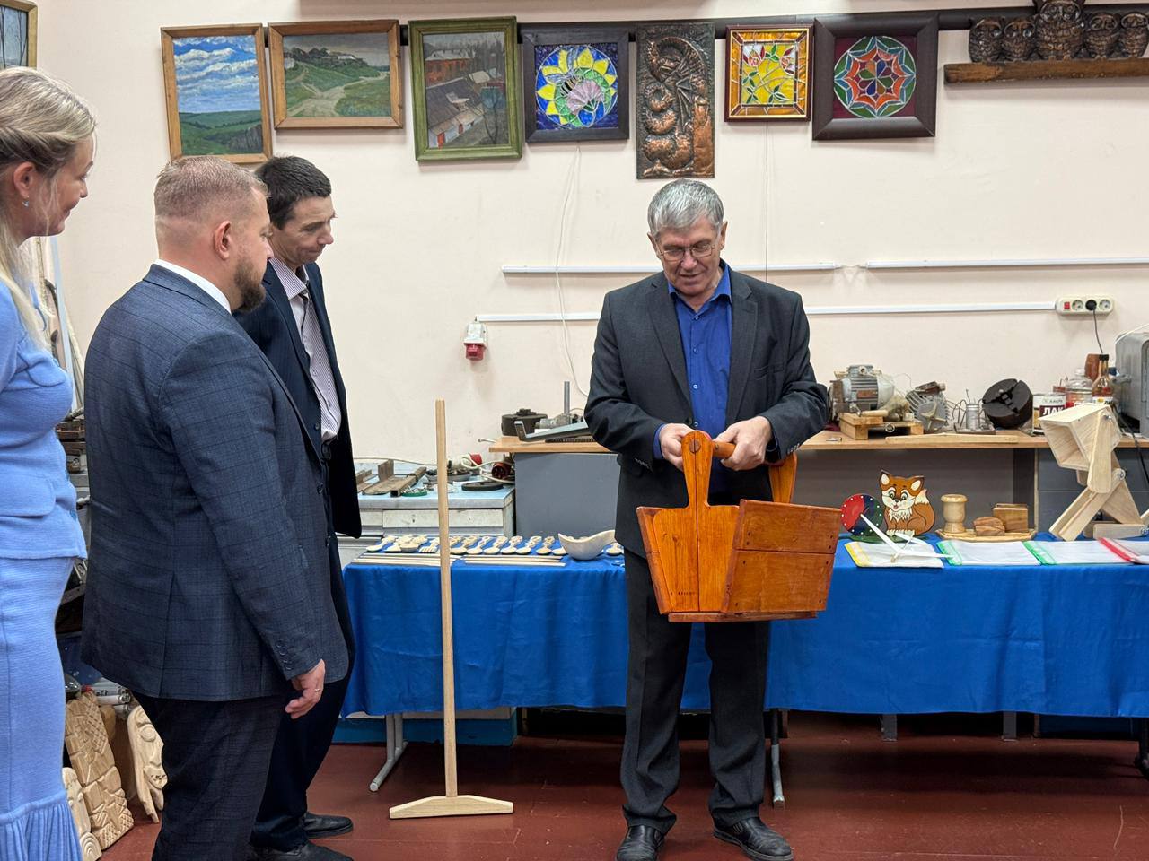 Заглянули и в соседний кабинет по работе с деревом. Помню, как в школе сделал маме скалку, мастерил стулья – рад, что такие традиции живы. С Советом отцов обсудили, как расширить практику совместных занятий на свежем воздухе и «уроков профессий» – в Совете есть, например, сотрудники МЧС, ребятам точно будет интересно.