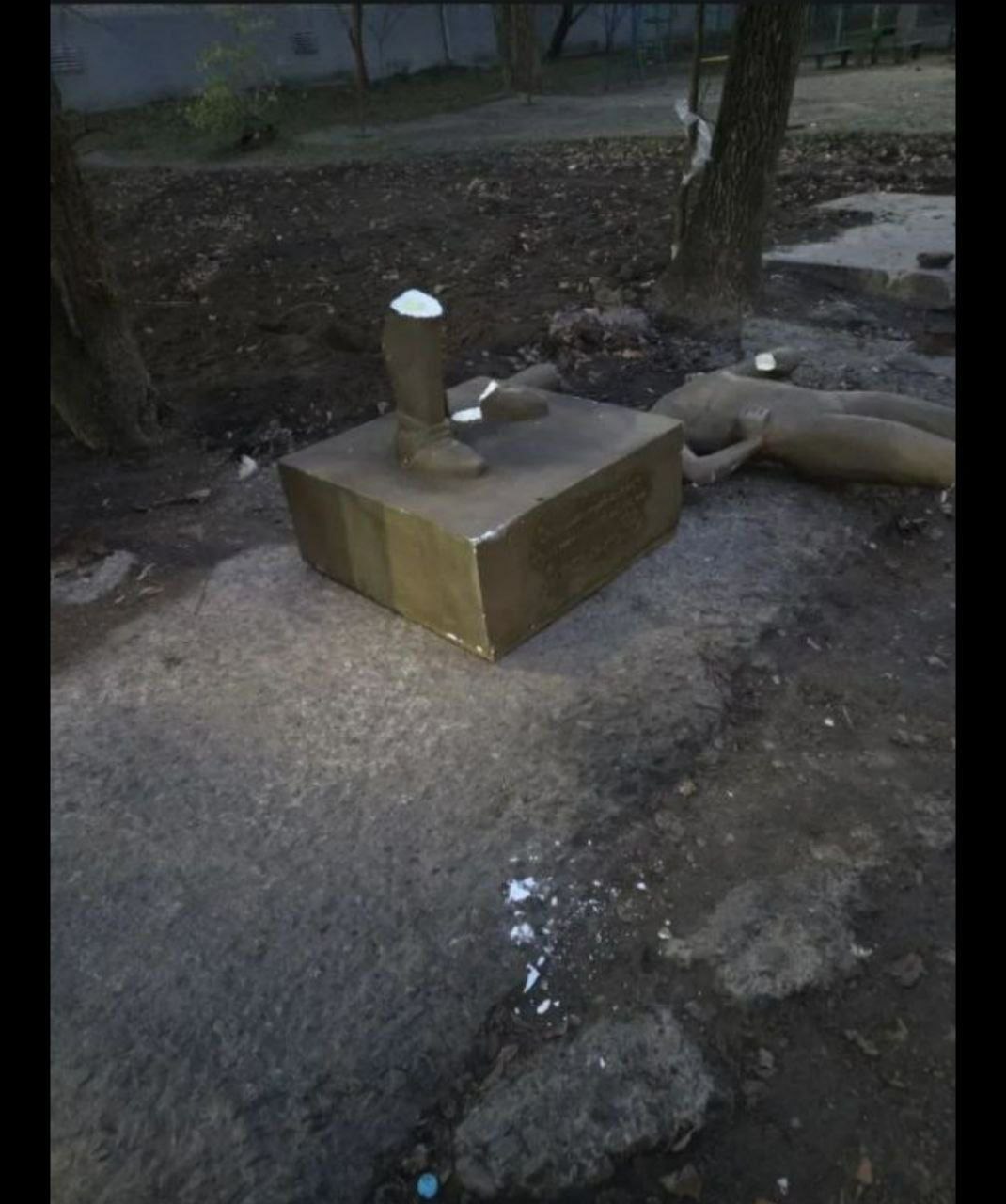 Непревзойденный памятник Павлу Деревянко в Таганроге — всё! Ночью кто-то испугался и разбил фигуру.