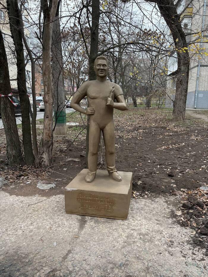 Памятник актёру с «Оскаром» в руках установили на улице Котлостроительная, где в детские годы жил артист. В сети написали, что скульптуру профинансировали жители города. Качество статуи вызвало бурное обсуждение, некоторые посчитали её криповой, другим скульптура, наоборот, понравилась, они призвали перенести памятник в более видное место на набережную.