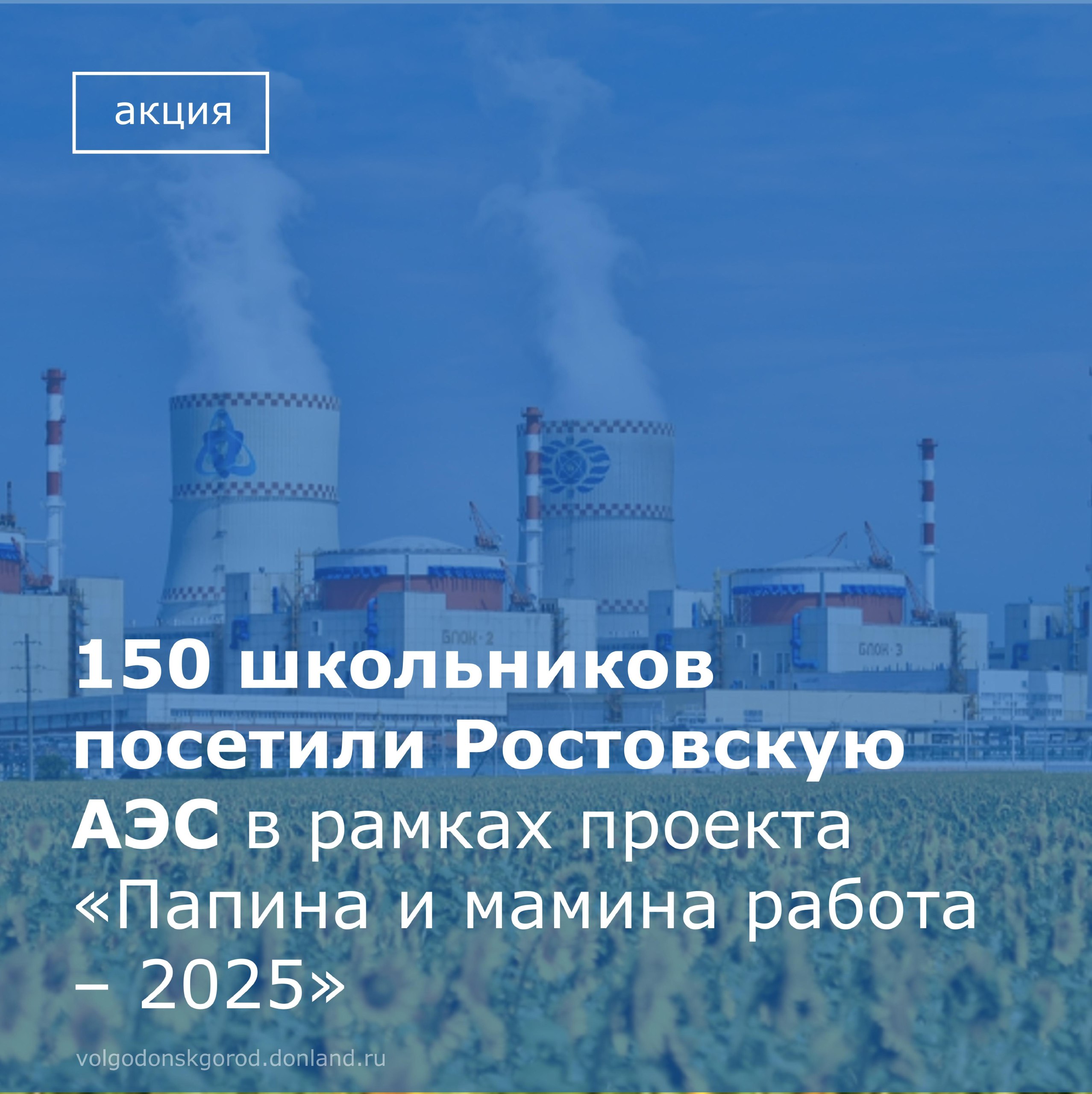 150 школьников в Волгодонске смогли посетить атомную станцию благодаря проекту «Папина и мамина работа – 2025». Проект ориентирован на детей работников атомной станции, и именно они стали гостями крупнейшего энергетического предприятия Юга России.