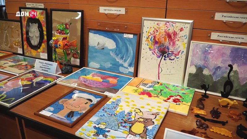 Чтобы ребята могли лучше понимать людей с ограниченными возможностями здоровья, в читальном зале организовали выставку. Картины, скульптуры, вышивка, другие поделки – и все это изготовили дети с инвалидностью.