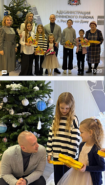 Геннадий Витальевич выбрал два шара с волшебной ёлки. Исполнил желания воспитанниц детского сада №181. Маше подарил умную колонку Алису, а Веронике самокат и набор защиты для безопасных прогулок. Обе девочки растут в многодетных семьях, депутат-единорос передал их братьям и сестрам сладкие новогодние подарки.