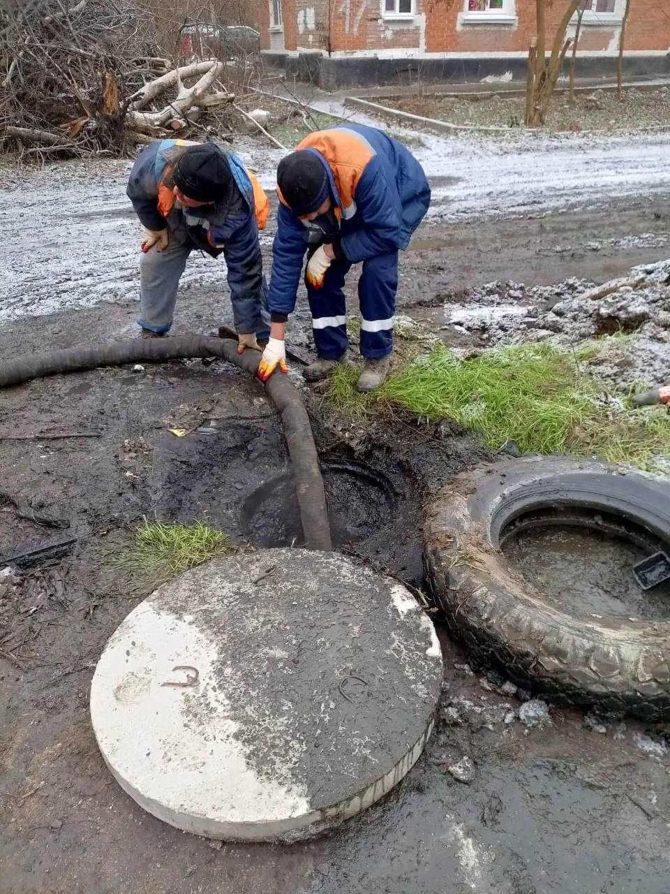 На улице Мешкова, д. 10 силами бригады шахтинского филиала ГУП РО УРСВ выполняется планировка грунта, откачка колодца, подготовка к чистке.