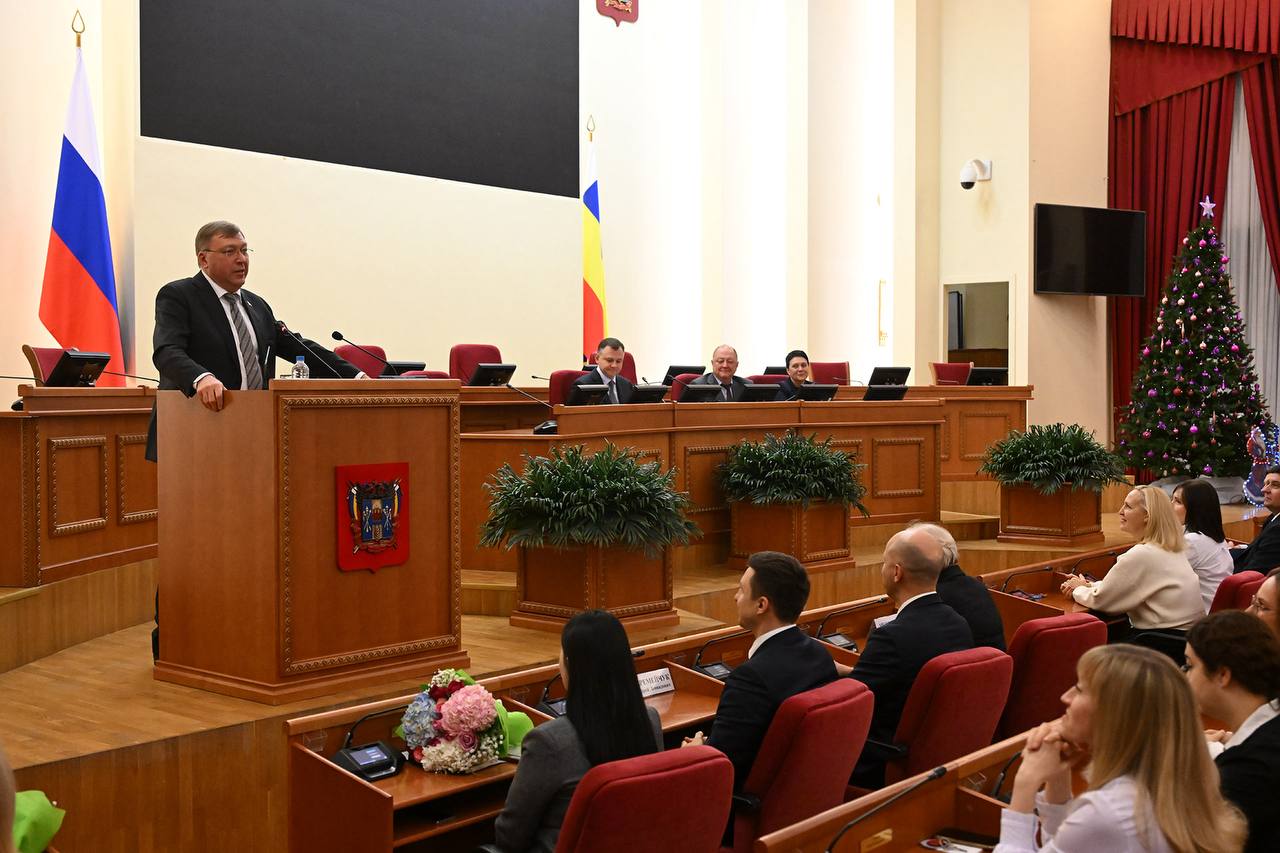 Губернатор Ростовской области Юрий Слюсарь и Председатель Законодательного Собрания Ростовской области Александр Ищенко поблагодарили сотрудников регионального министерства финансов за работу в 2025 году и поздравили их с наступающим Новым годом.