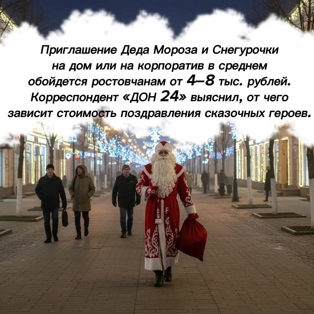 Приглашение Деда Мороза и Снегурочки на дом или на корпоратив в среднем обойдется ростовчанам от 4–8 тыс. рублей. Корреспондент «ДОН 24» выяснил, от чего зависит стоимость поздравления сказочных героев.