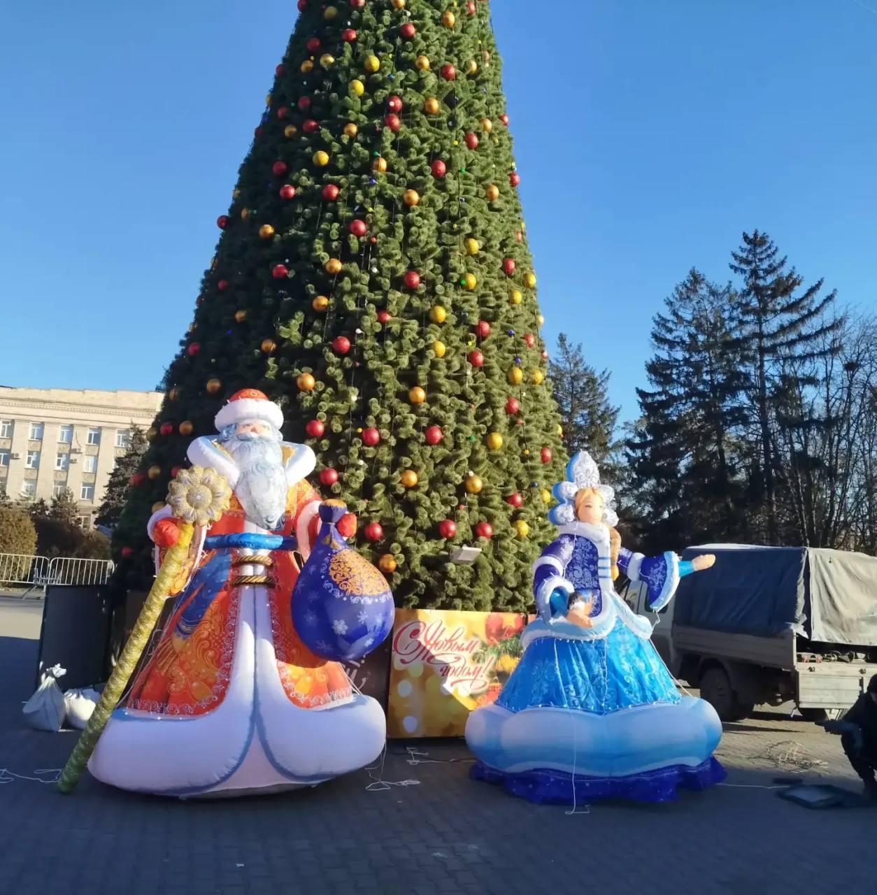 Сегодня в городе Шахты возле главной городской Ёлки, установленной на центральной площади имени Ленина, появились долгожданные герои праздника — Дед Мороз и Снегурочка. Эти яркие фигуры высотой более трех метров уже радуют шахтинцев и гостей города, создавая настроение приближающегося праздника.