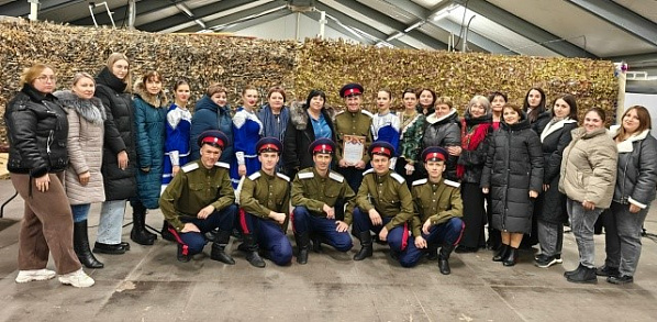 Ансамбль «Донское сияние», подарив военнослужащим праздничное настроение, выступил под руководством Александра Чудина перед ними с концертом.