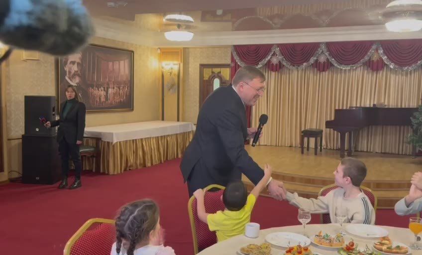 В Ростовском государственном музыкальном театре дети участников специальной военной операции и дети из социально-реабилитационных центров встретились с Дедом Морозом и Снегурочкой.