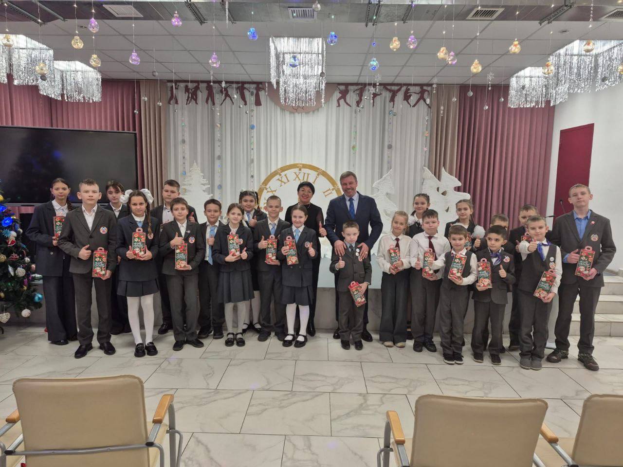 Оксана Тумко, председатель Батайской городской Думы, и Александр Симоненко, директор лицея № 10, в тёплой дружеской обстановке вручили новогодние подарки детям участников специальной военной операции.