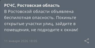 Беспилотная опасность объявлена по всей территории Ростовской области.