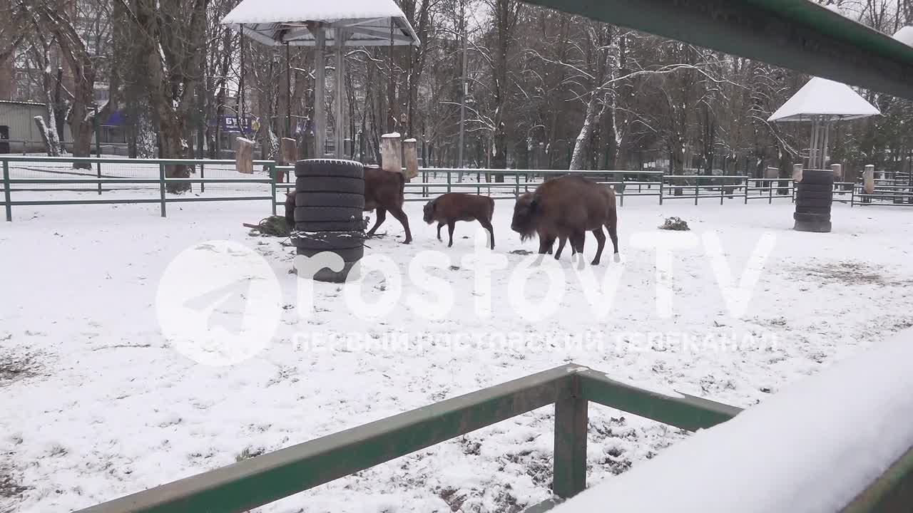 Если нам новогодние деревья уже неинтересны, то ростовские зубры готовы драться за настоящее лакомство! В основном парнокопытные едят только кору, а ароматные веточки им нужны для забавы или для сна в виде перинки.
