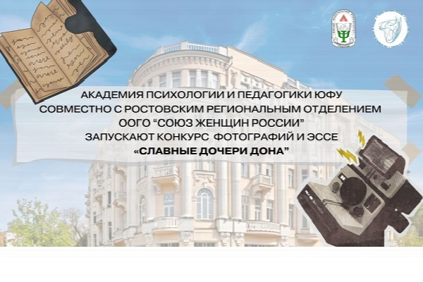 13.01.2026, /=РО=/Академия психологии и педагогики Южного федерального университета совместно с Ростовским региональным отделением ООГО «Союз женщин России» запускают конкурс фотографий и эссе «Славные дочери Дона». Об этом сообщает пресс-служба вуза.
