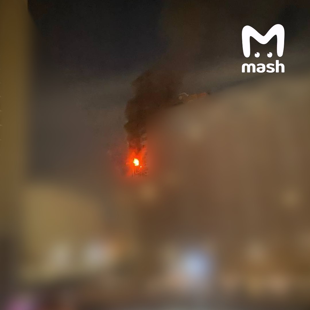 Местные говорят, пострадал 14-й этаж — части БПЛА вместе с частью фасада упали на припаркованные машины. Сначала услышали грохот, затем появился дым.