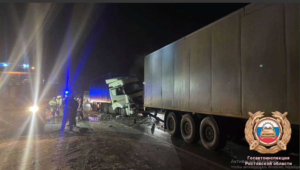 15.01.2026, /=РО=/Вчера вечером на трассе «М-4 Дон» в Аксайском районе, в направлении на юг, 64-летний водитель автомобиля «КамАЗ» в составе автопоезда с полуприцепом «Тонар», по предварительным данным, не выбрал безопасную дистанцию, в результате чего допустил столкновение с движущимся впереди в попутном направлении автомобилем «ДАФ» в составе автопоезда с полуприцепом «Когель», под управлением 43-летнего водителя. Об этом сообщает донская Госавтоинспекция.
