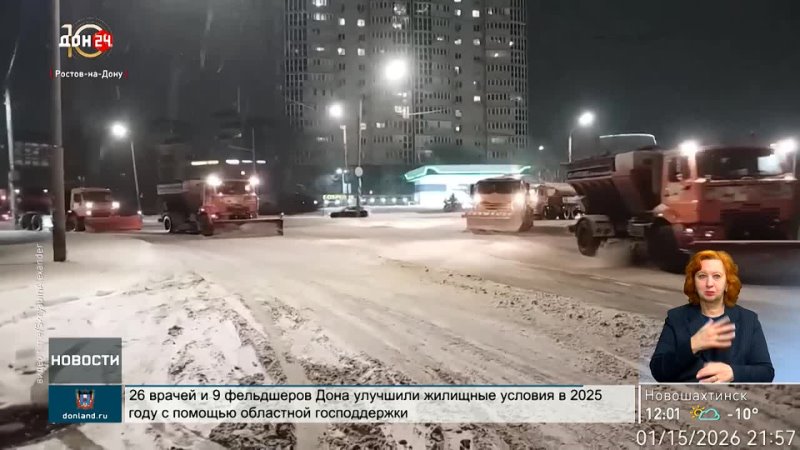 Ростовская область, 16 января 2026. Телеканал «ДОН 24». Из-за усиления снегопада на региональных дорогах задействовали 250 единиц техники. А в донской столице количество снегоуборочных машин увеличили до 134.