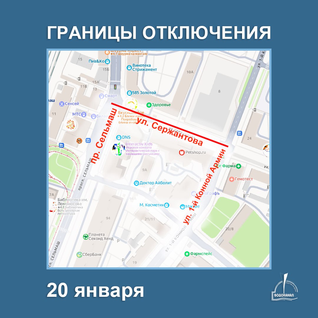 19.01.2026, /=РО=/20 январяв будет ограничена подача холодной воды на улице Сержантова: от проспекта Сельмаш до улицы 1-ой Конной Армии. Об этом сообщает пресс-служба Ростовводоканала.