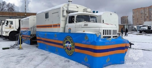 «Подвижный пункт управления – это комплекс, состоящий из специально оборудованных транспортных средств повышенной проходимости и снаряжения, позволяющий развернуть в любом месте полевой лагерь», – пояснили в ведомстве.