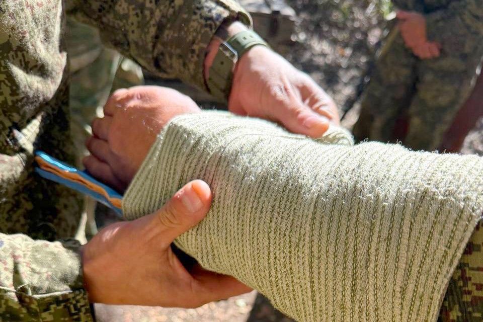 На занятиях по военно-медицинской подготовке военнослужащие осваивают навыки оказания помощи при кровотечениях, в том числе наложения жгута с целью остановки наружного артериального кровотечения при различных ранениях.