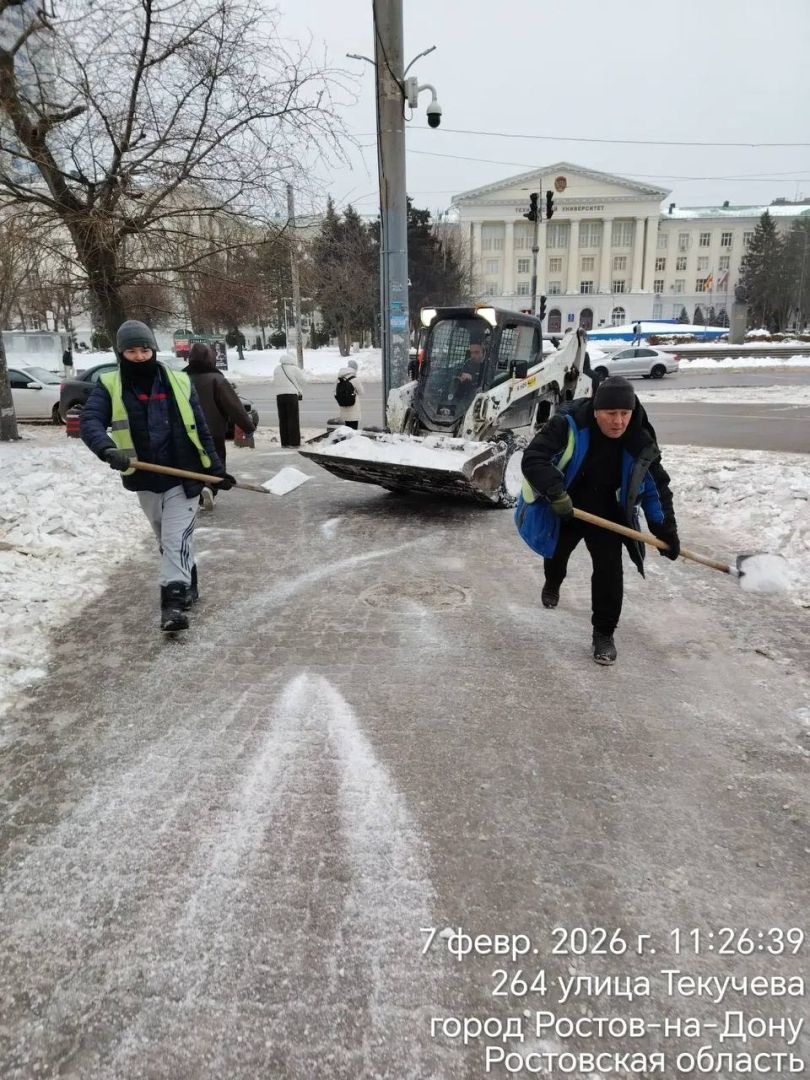 07.02.2026, /=РО=/В донской столице усилена работа по противогололёдной обработке улиц. Об этом сообщает глава города Александр Скрябин.