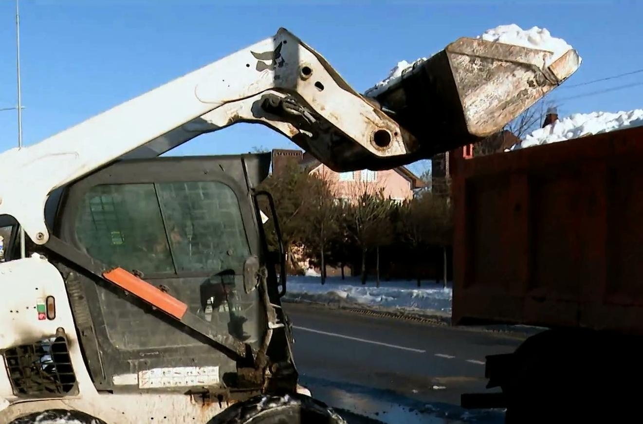 Перейдем к уборке улиц. После последнего снегопада автомобильные дороги уже почистили, чуть сложнее с тротуарами. Против этого соперника коммунальщики используют мини-погрузчик. С помощью железного ковша он легко убирает ледяную корку. А дальше грузит ее в самосвал. За полдня работы с улиц в районе Вертолетного поля их команда вывезла больше ста кубометров снега.