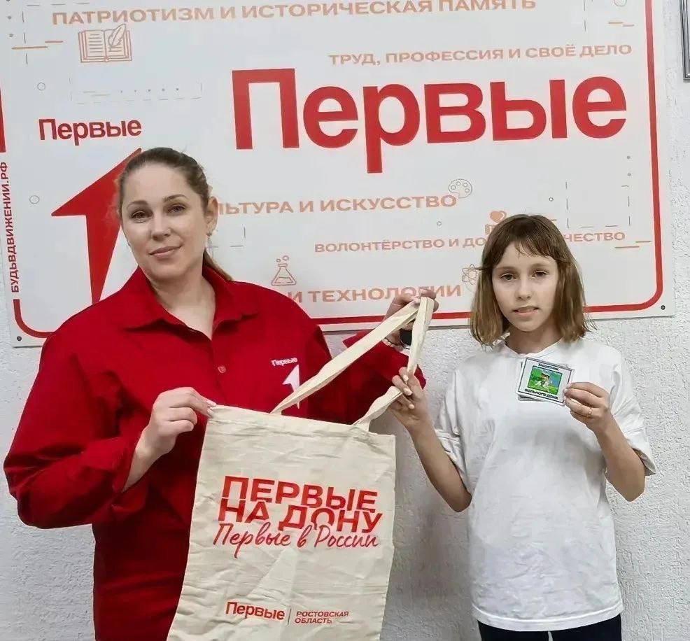 В отделении Движения Первых в Батайске наградили ученицу 5 «В» класса гимназии №21 Милану Моисеенко — она стала победительницей конкурса «Шеврон форму красит».