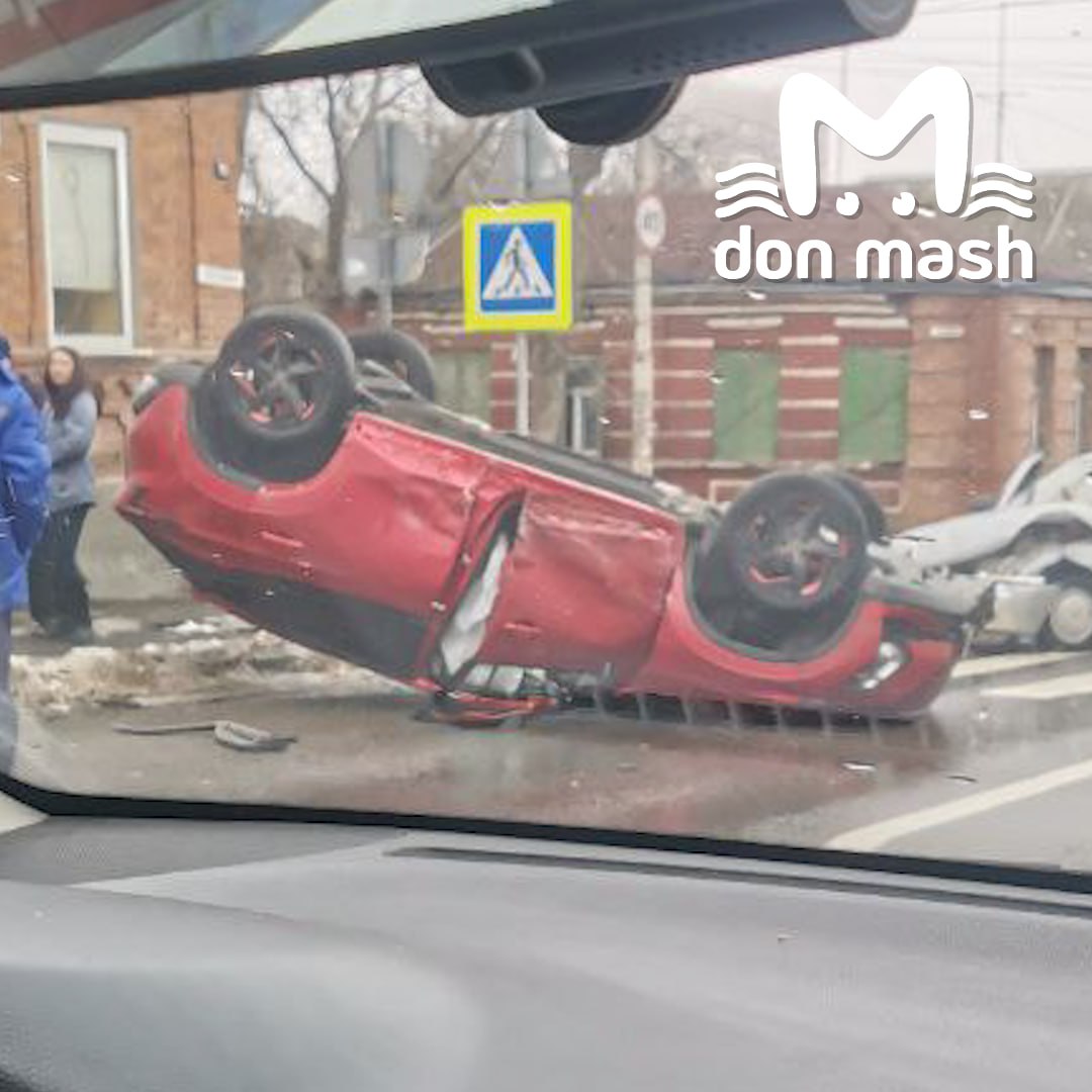 "Омода" опрокинулась на крышу после столкновения с "десяткой" в Ростове.