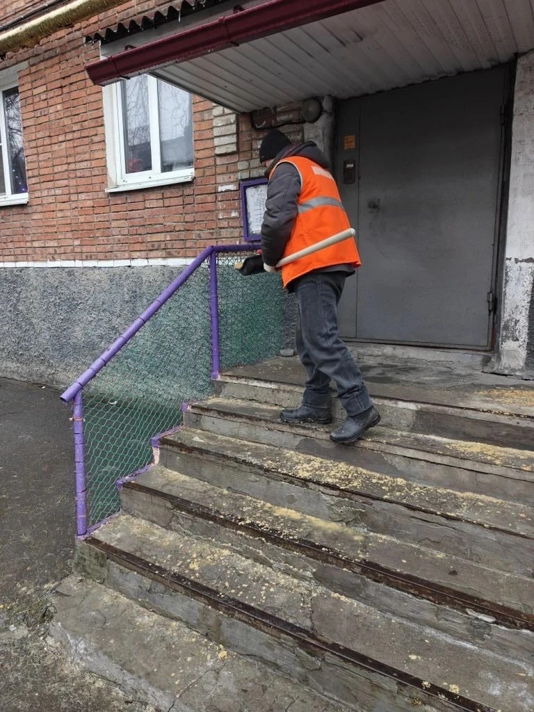 Поэтапно посыпаются подходы к подъездам, придомовые территории многоквартирных домов.