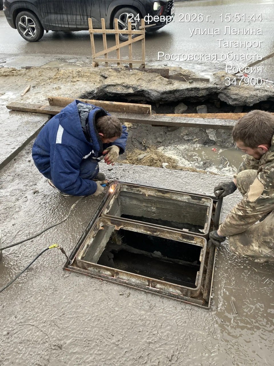 Проведены сварочные работы: установлен металлический уголок по периметру проёма ливнеприёмного колодца, что обеспечит надёжность конструкции.