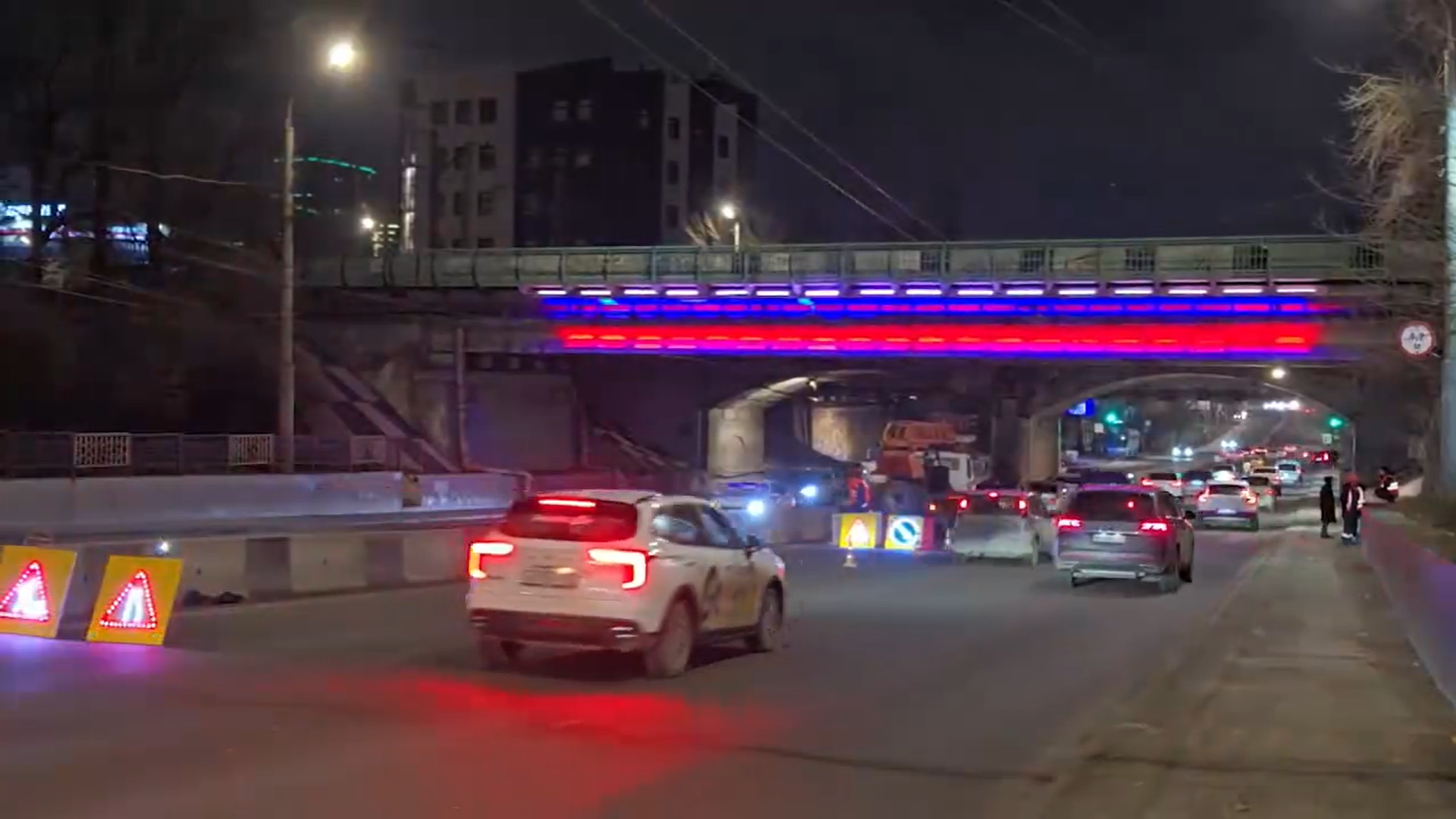 Мост на ул. Нансена в Ростове теперь окрашивается ночью в цвета российского триколора. На нем установили подсветку из 58 прожекторов. Об этом рассказал глава города Александр Скрябин.