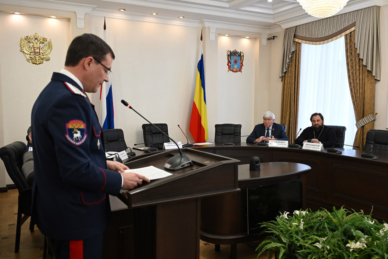 С основным докладом выступил директор департамента по делам казачества и кадетских учебных заведений Ростовской области Сергей Красавин.