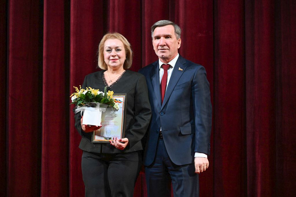 Игорь Гуськов от имени депутатов донского парламента пожелал педагогам здоровья, мира, добра, благополучия и вручил отличившимся работницам сферы образования поощрения Законодательного Собрания.
