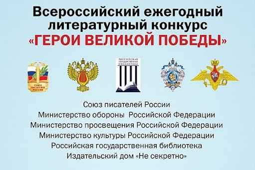 Конкурс «Герои Великой Победы» проводят Союз писателей РФ, Министерство обороны РФ, Министерство просвещения РФ, Министерство культуры РФ в целях сохранения и увековечения военно-исторического наследия России.