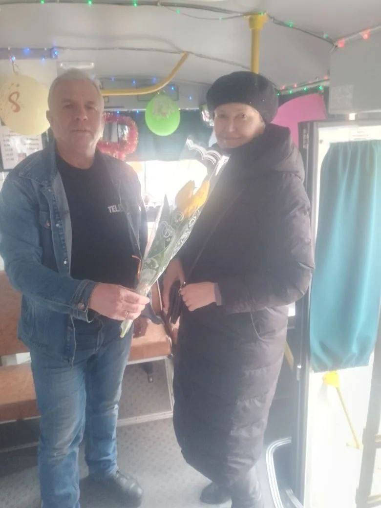 В преддверии 8 Марта он украсил салон автобуса шарами, а дамам подарил тюльпаны. Ну, настоящий джентельмен!