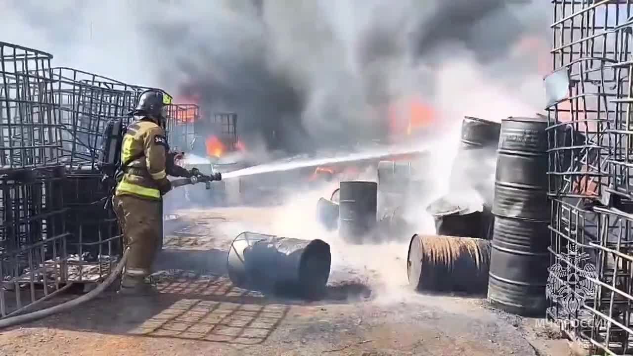 - На месте пожара (склад ГСМ) проводят забор проб воздуха, чтобы узнать концентрацию вредных веществ, сообщили в пресс-службе ГУ МЧС Ростовской области. #новостиростова #ростовнадону Подпишись на @donnewru// Donnews l Новости-на-Дону