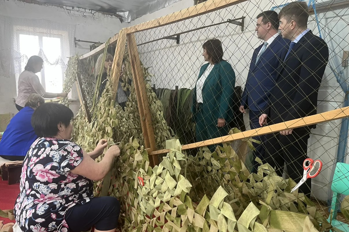 Также Дмитрий Водолацкий познакомился с волонтерами, которые плетут маскировочные сети.
