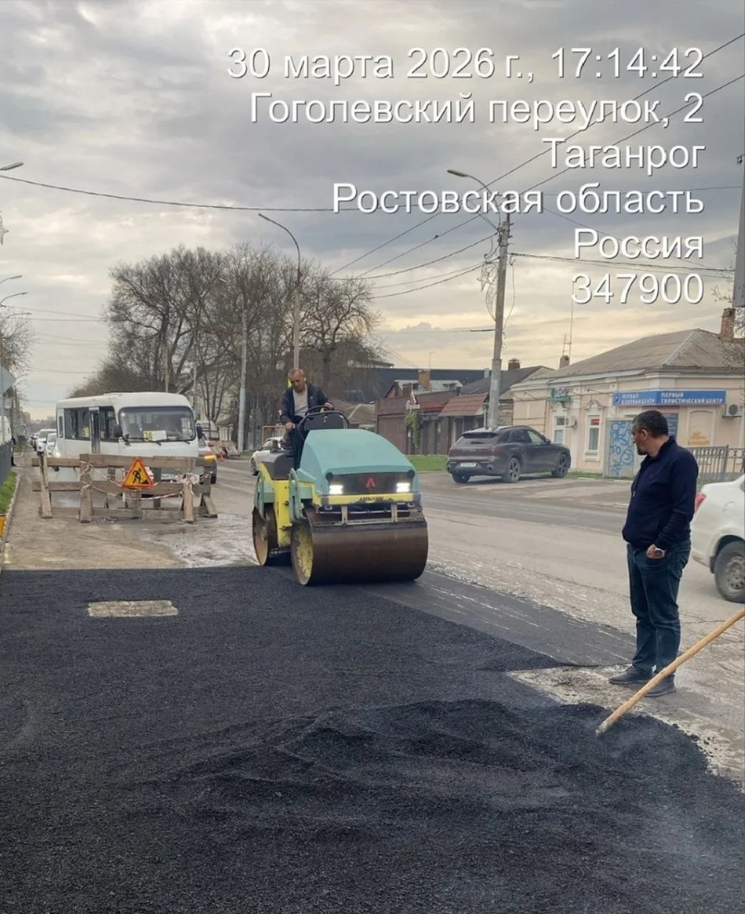 Завершены работы по асфальтированию территории вокруг ливневой системы на пересечении улицы Петровской и переулка Гоголевского.