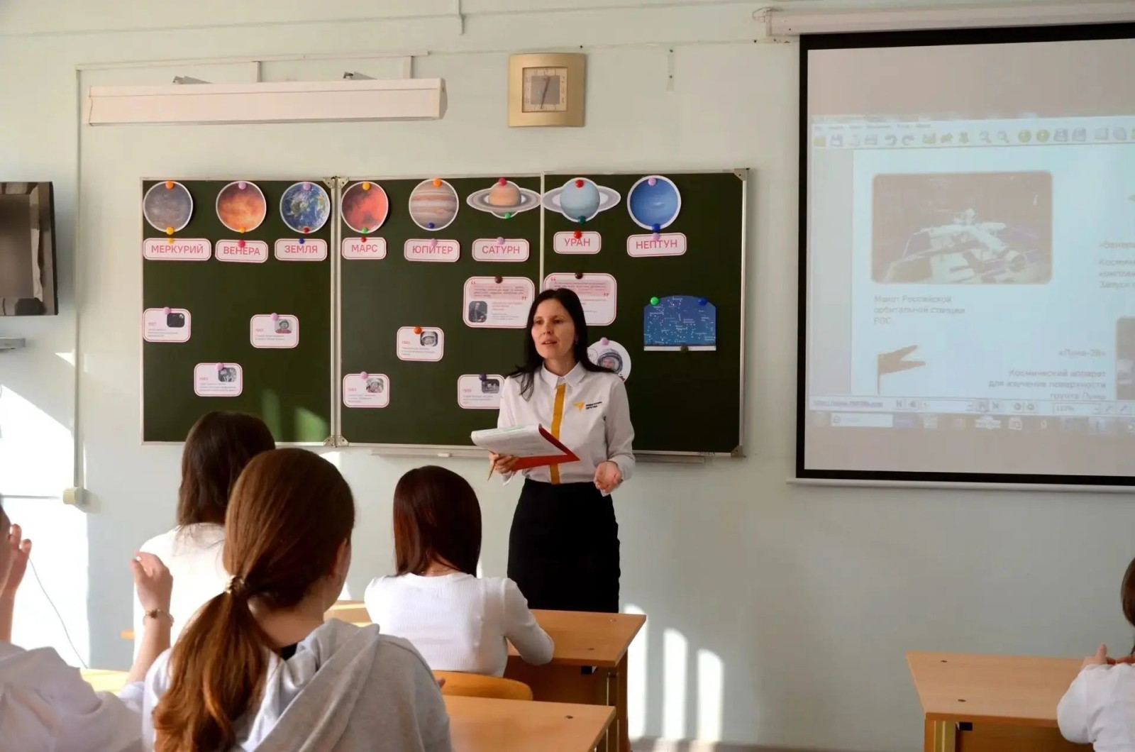 На уроках и внеклассных мероприятиях дети и подростки узнают об истории освоения космоса, знаменитых космонавтах и космических миссиях, а также о современных технологиях, используемых в космической отрасли. В рамках апрельского проекта Минпросвещения РФ «Мелодия вместо звонков» на переменах звучат песни о космосе и путешествиях.