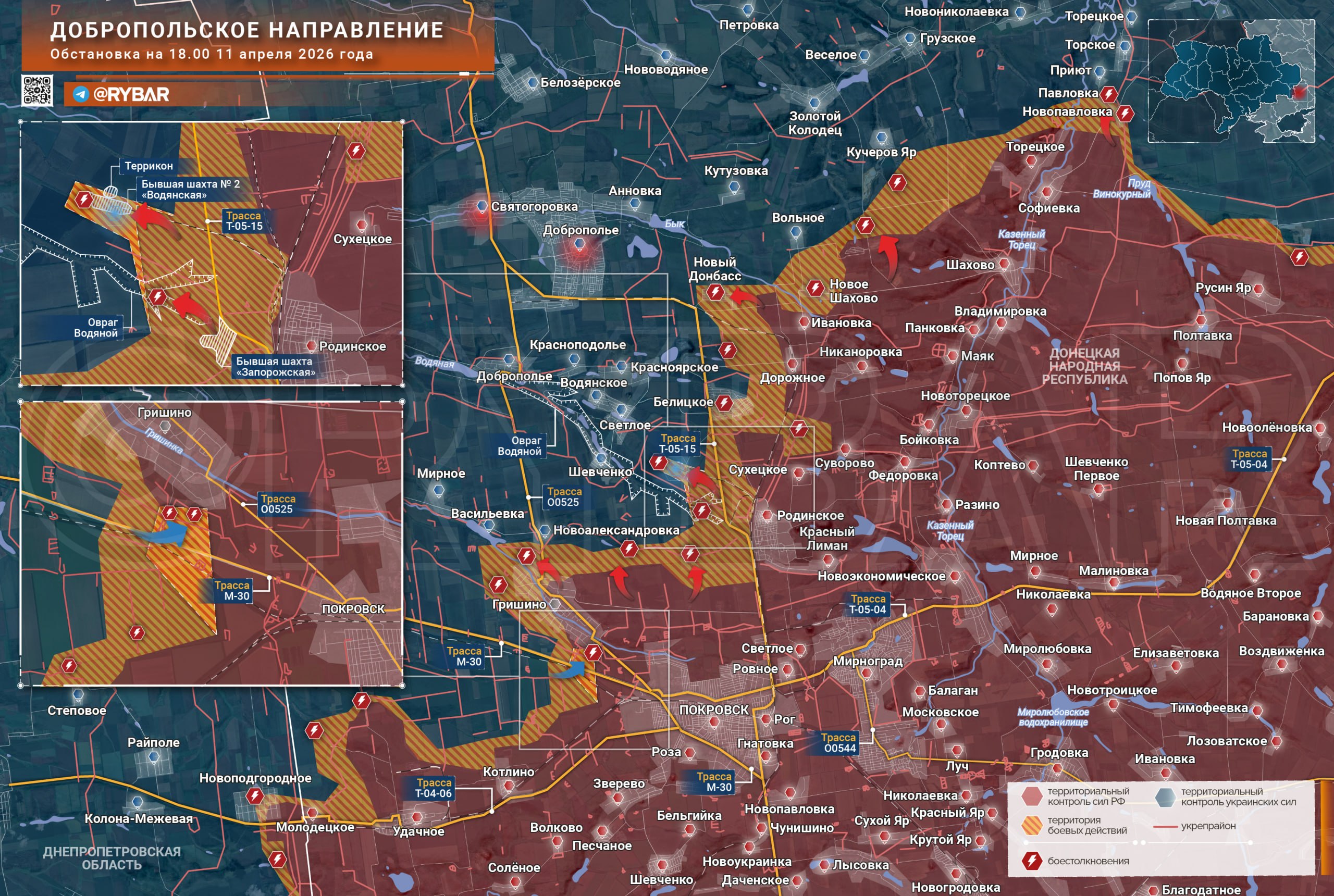 На Добропольском направлении российские войска планомерно наступают в сторону одноименного города. Основные бои разворачиваются на рубеже Новый Донбасс — Белицкое — Родинское.