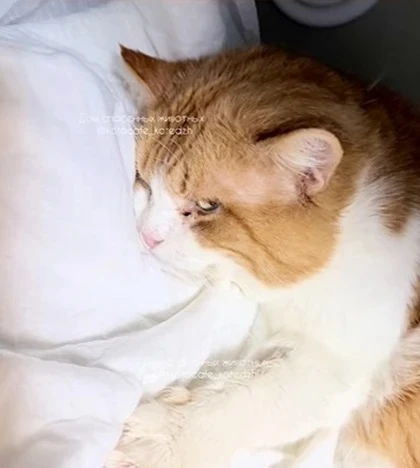 Рыжий кот Геджух застрял в форточке во время потопа в Дагестане и чудом выжил. Его тело уже остыло, когда волонтеры нашли кота висящим на приоткрытой форточке. Из-за долгого сдавливания у него отказали задние лапы, и теперь врачи борются с отравлением организма токсинами.