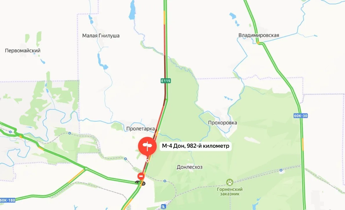 На М4 «Дон» возле хутора Пролетарка образовалась 10-километровая пробка на Ростов.