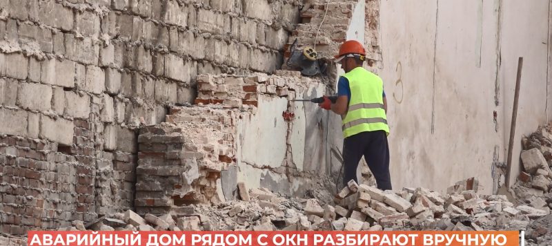 Вручную, по одному кирпичу разбирают рабочие старое здание на Социалистической,
