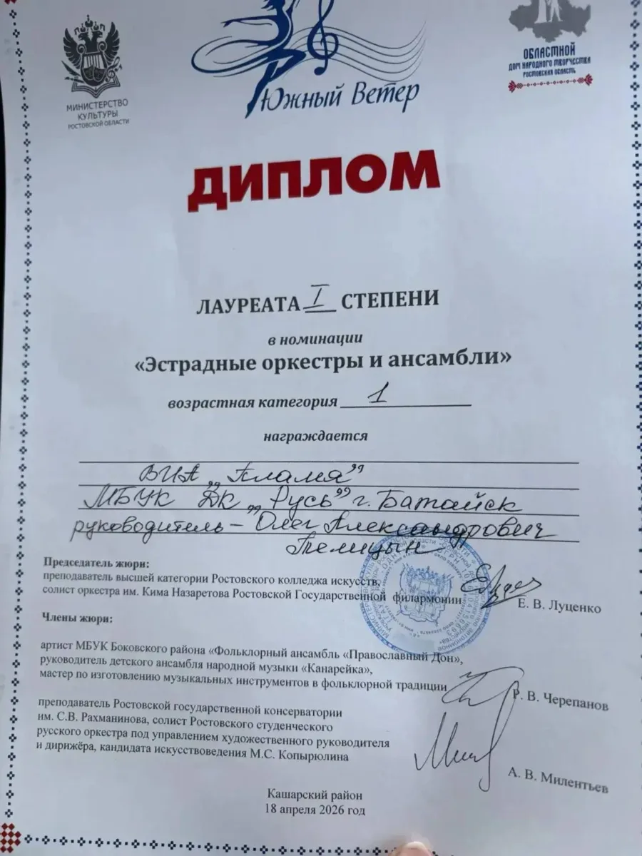 Воспитанники гитарной студии Дома культуры «Русь» под руководством Олега Телицина вновь достойно представили Батайск на областном конкурсе инструментального исполнительства «Южный ветер».