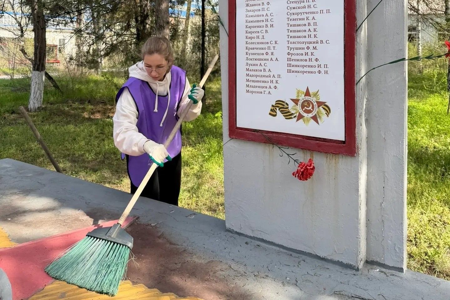 Например, в минувшие выходные активная работа велась в Октябрьском районе. В поселке Каменоломни волонтеры занимались благоустройством территории у стелы «Мемориал памяти». В городе Гукове участники акции привели в порядок братскую могилу воинов Красной армии, убрав листву и ветки, а также облагородив аллеи и клумбы. Субботник также прошел у обелиска участникам Великой Отечественной войны в Талловеровском сельском поселении Кашарского района.