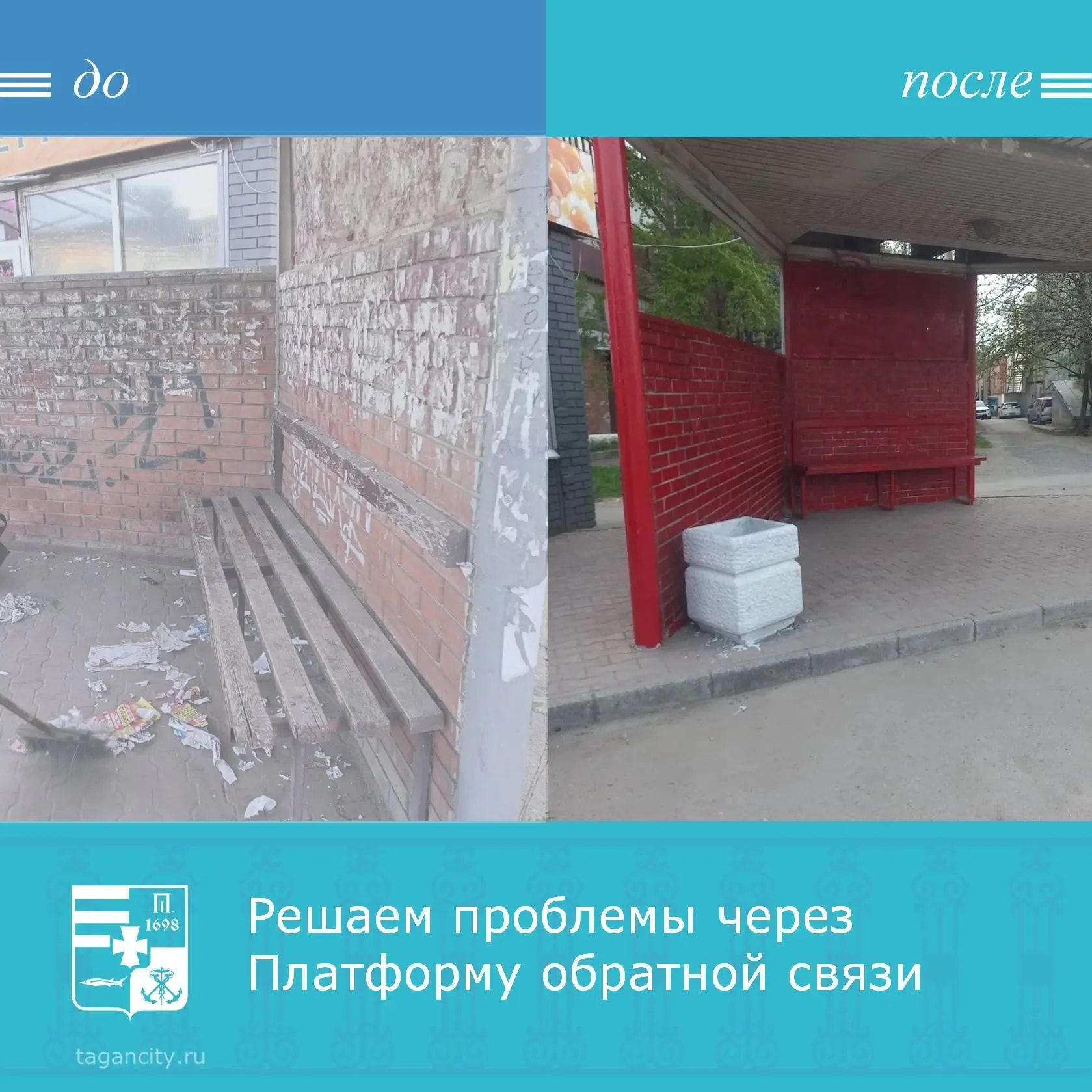 Выполнены работы по удалению объявлений и надписей, остановочный павильон приведен к нормативному состоянию.