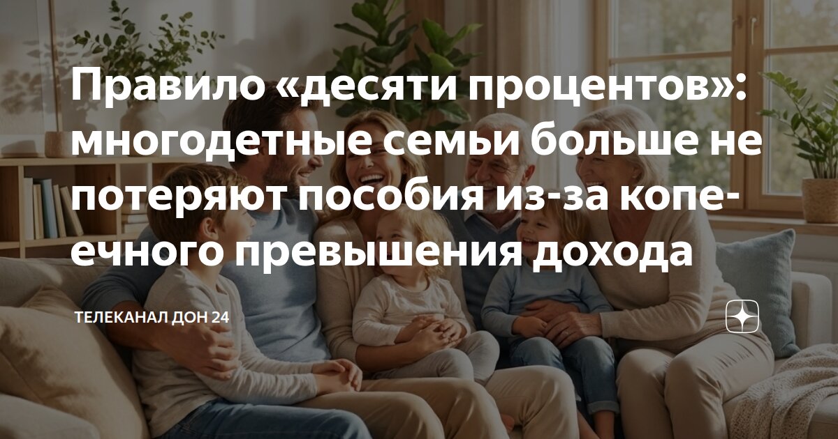Правило «десяти процентов»: многодетные семьи больше не потеряют пособия из-за копеечного превышения дохода
